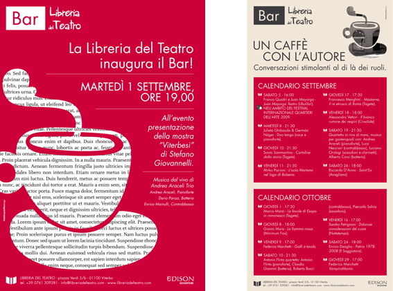 L'evento ha ospitato una mostra di ritratti degli attori della cultura cittadina, un concerto jazz ed ha inaugurato una serie di incontri con autori letterari.